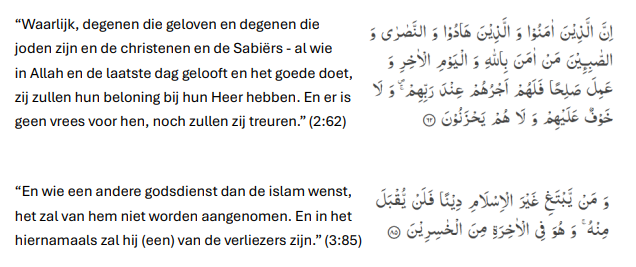 “En wie een andere godsdienst dan de islam wenst, het zal van hem niet worden aangenomen.