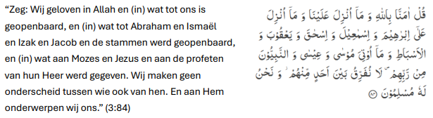 Allah”, wat betekent “wij onderwerpen ons aan Allah”. Aangezien het woord “moslim” hier wordt