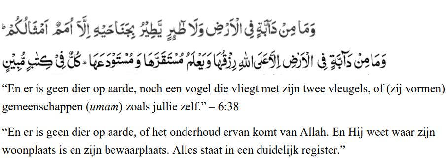 de koran dieren en vogels als gemeenschappen erkent, betekent dit dat de koran hen