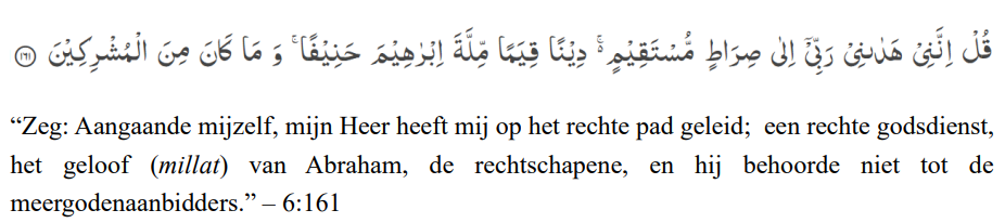 hij het geloof (oftewel de millat) van Abraham volgde. Zo lezen we in de heilige koran:
