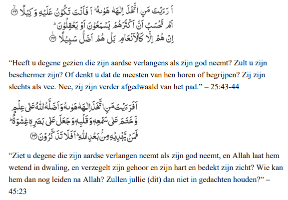 persoon zijn aardse verlangen als god neemt, dan zal Allah hem niet langer meer leiden.
