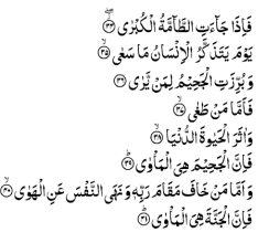 mensen staat elders in de heilige koran: “ En voor hem die vreest voor zijn Heer te staan, zijn er twee tuinen,” 55:46. Dus voor hem die vanwege de verantwoording in vrees voor zijn Heer